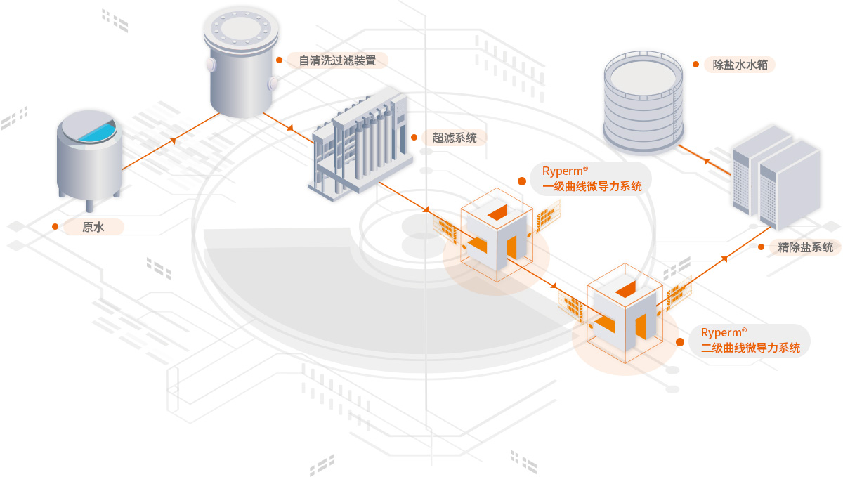 萊特萊德鍋爐補給水工藝采用自主研發(fā)的Ryperm曲線微導力技術,結合多項涵蓋預處理、化學清洗、加藥等專利工藝技術,成功解決膜系統(tǒng)在高回收率條件下的污染問題,保證了膜系統(tǒng)的穩(wěn)定性,從而使該項膜技術的經典應用再度煥發(fā)光芒。