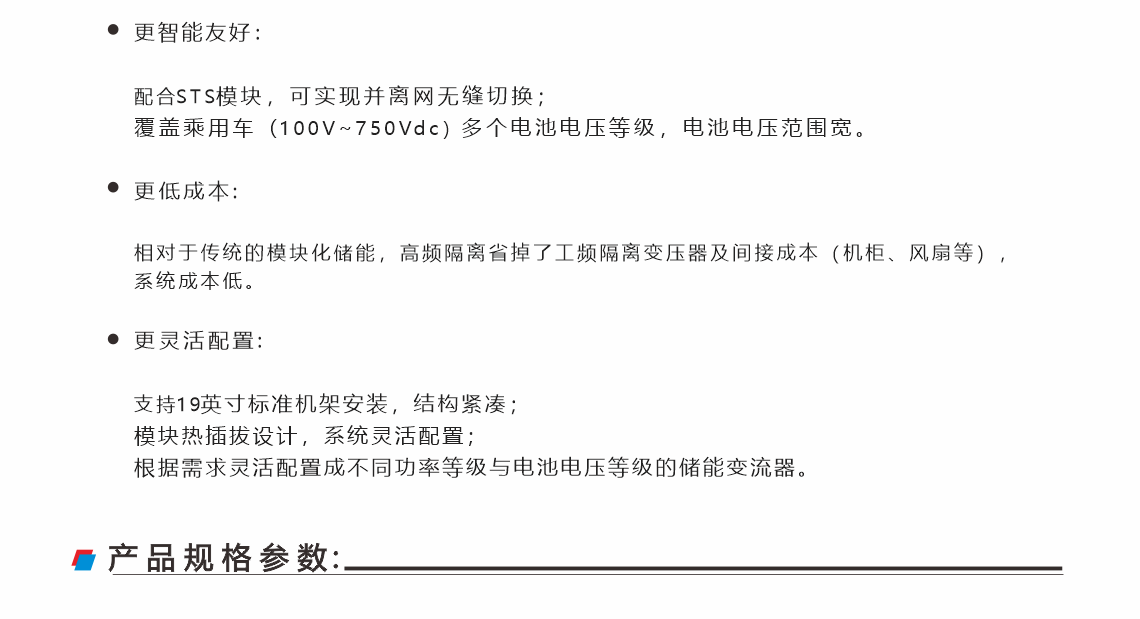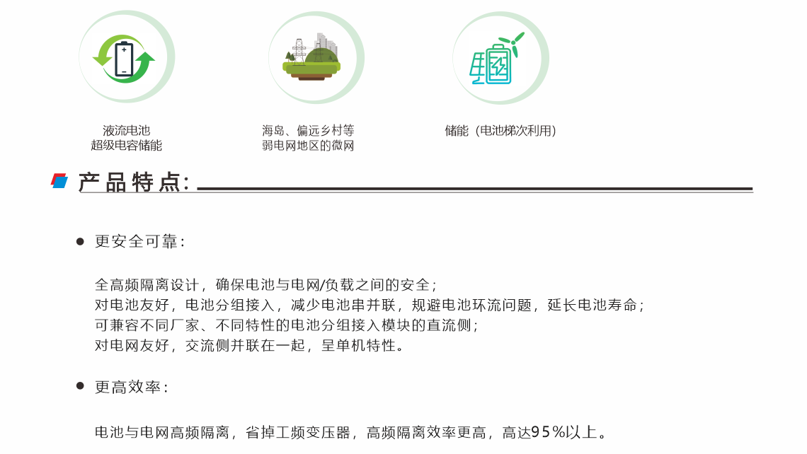 HPCS-75040-200K并離網(wǎng)儲(chǔ)能PCS變流器,用V2G高頻隔離模塊構(gòu)建而成,根據(jù)需求靈活配置成不同功率等級(jí)與不同電池電壓,配合STS,可實(shí)現(xiàn)并離網(wǎng)無(wú)縫切換,確保負(fù)載不掉電。