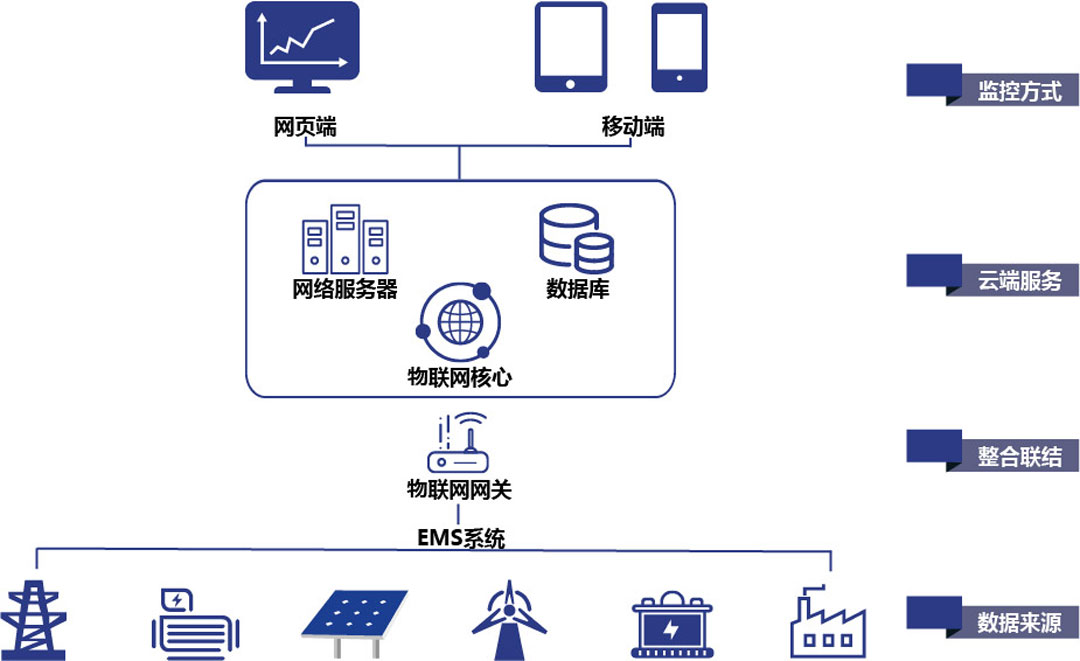 基于物聯(lián)網(wǎng)技術、實現(xiàn)多種能源的集中運維管理。可以進行實時數(shù)據(jù)采集、設備控制、測量、參數(shù)調(diào)節(jié)以及各類信號報警等功能。 |