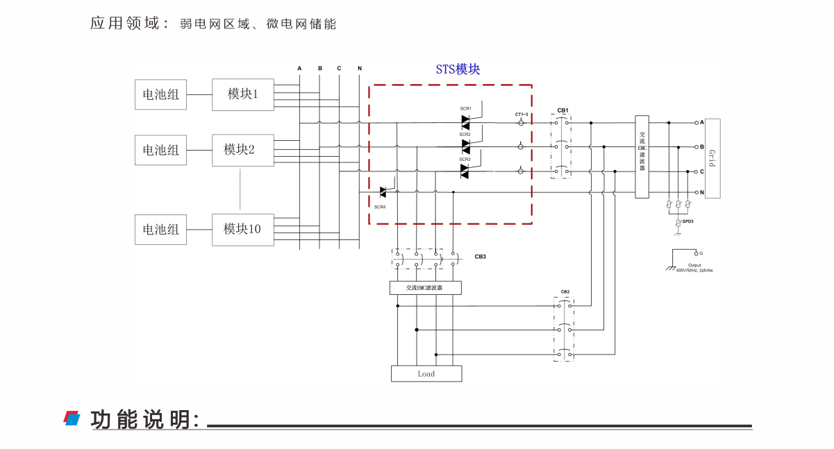 三相五線制(3W + N + PE),支持離網(wǎng)不平衡負(fù)載; 配合PCS模塊,可實現(xiàn)并離網(wǎng)無縫切換,保障重要負(fù)載持續(xù)供電不中斷; 模塊化設(shè)計,安裝與維護(hù)簡便;