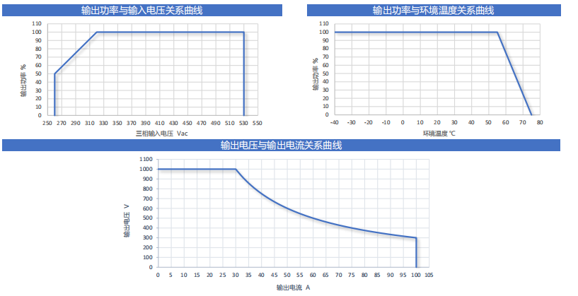 • 恒功率輸出范圍寬:300Vdc - 1000Vdc恒功率輸出,滿足各類電動車恒功率充電需求