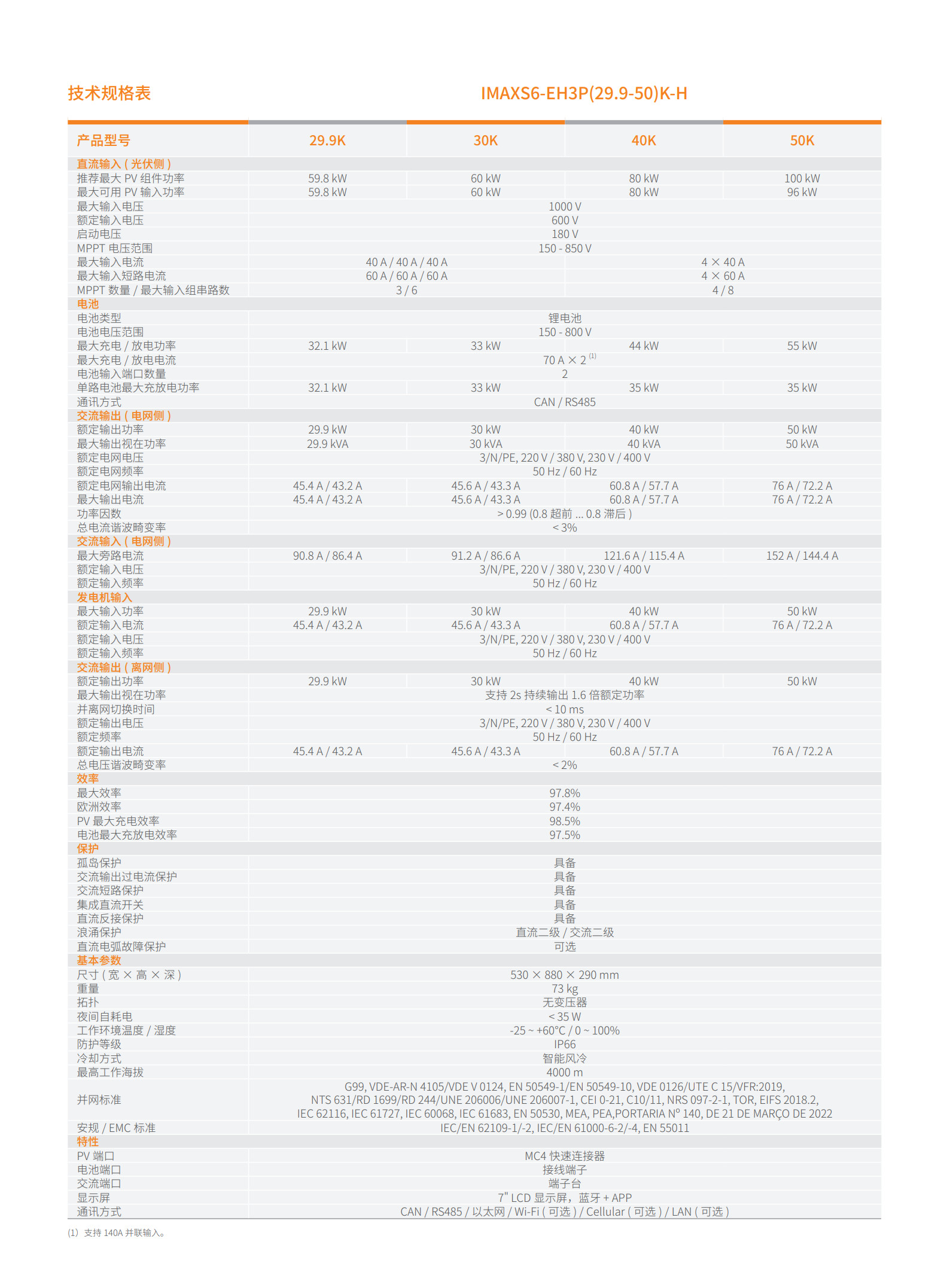 艾麥斯電源工商業(yè)儲(chǔ)能逆變器IMAXS6-EH3P(29.9-50)K-H
