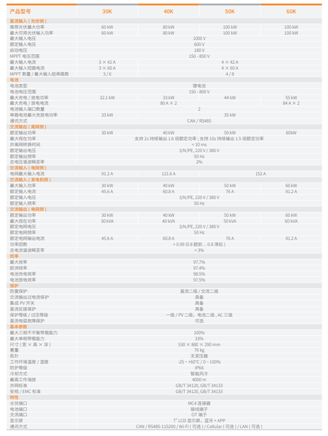 該系列逆變器配備2路電池接口,充放電電流高達(dá)84A + 84A(60K),能夠快速、高效地為電池進(jìn)行充放電操作,滿足工商業(yè)場景下頻繁的充放電需求,減少充電等待時(shí)間,提高能源利用效率。